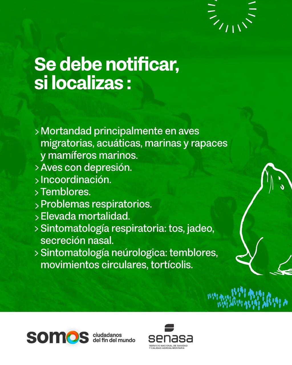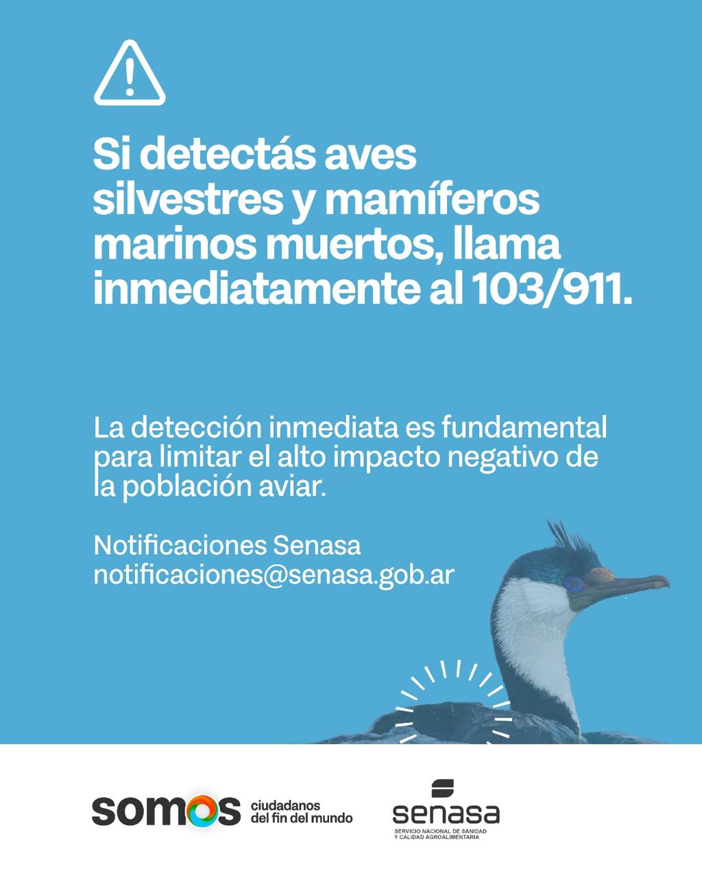En caso de detectar aves muertas o ejemplares en mal estado, dar aviso inmediato a través del 103/911.
