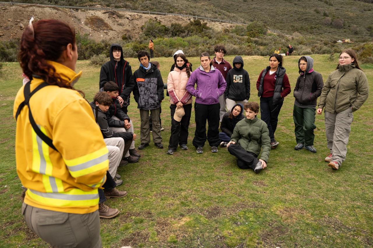 Más de un centenar de jóvenes del Colegio Julio Verne y del Colegio Provincial Los Andes participaron de una jornada de aprendizaje y concientización ambiental en la Reserva Provincial, Cultural y Natural Playa Larga, en el marco del lanzamiento oficial de la Temporada de Alto Riesgo de Incendios Forestales 2025-2026.